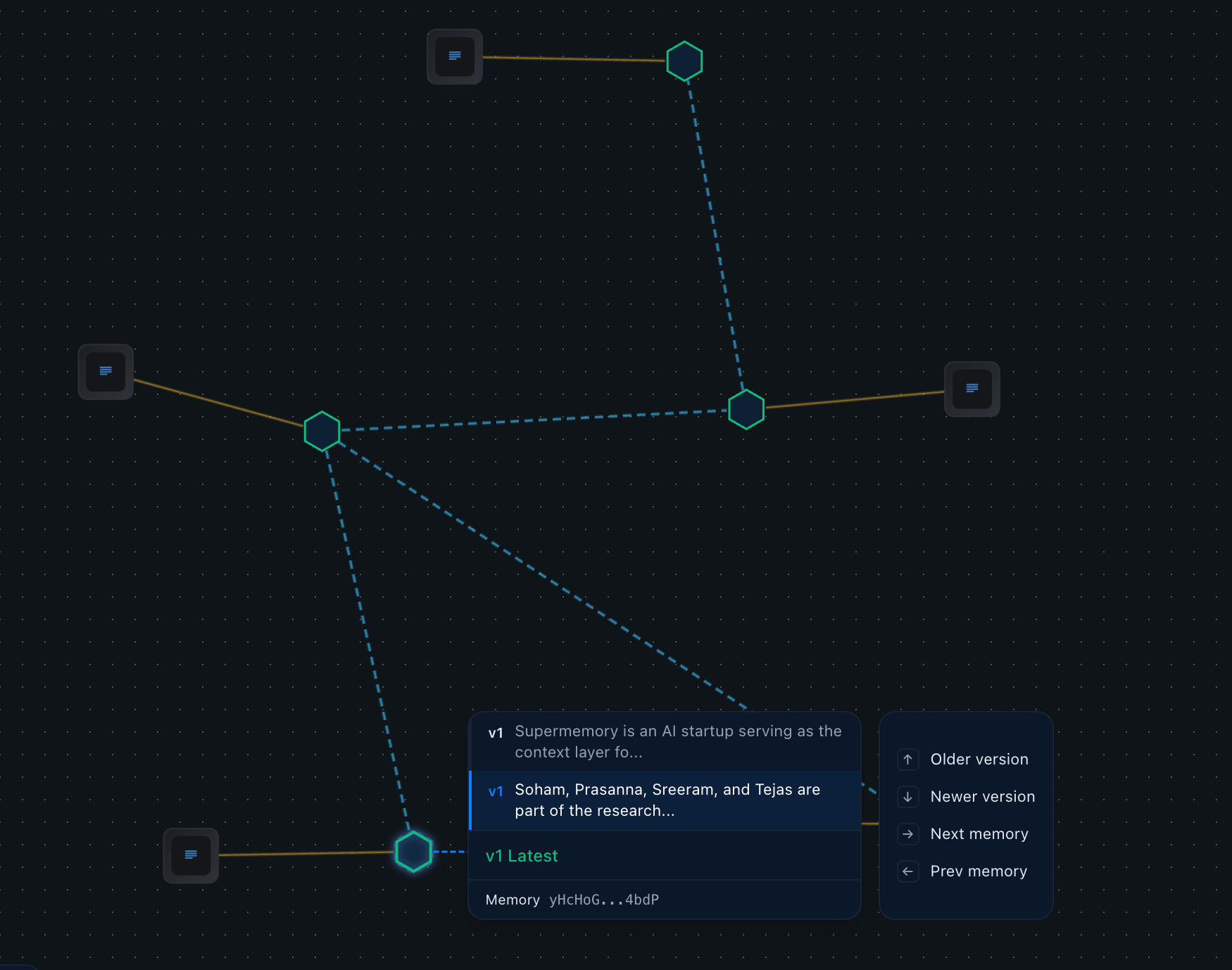 Let's look at how this actually works within Supermemory. Imagine a memory space containing a bunch of unstructured data about our team and what we do.