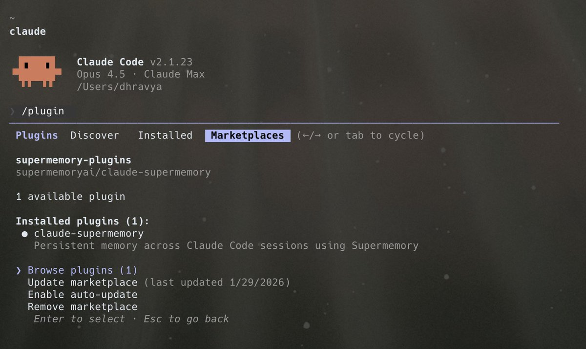 At Supermemory, we've been working on memory infrastructure for AI agents for a while now. We power memory for tens of thousands of AI applications. And we kept hearing the same thing from developers: "I wish my coding agent actually remembered stuff."Today we're launching a Supermemory plugin for Claude Code.The idea is simple: Claude Code should know you. Not just for this session—forever. It should know your codebase, your preferences, your team's decisions, and the context from every tool you use.Here's what that actually looks like in practice: