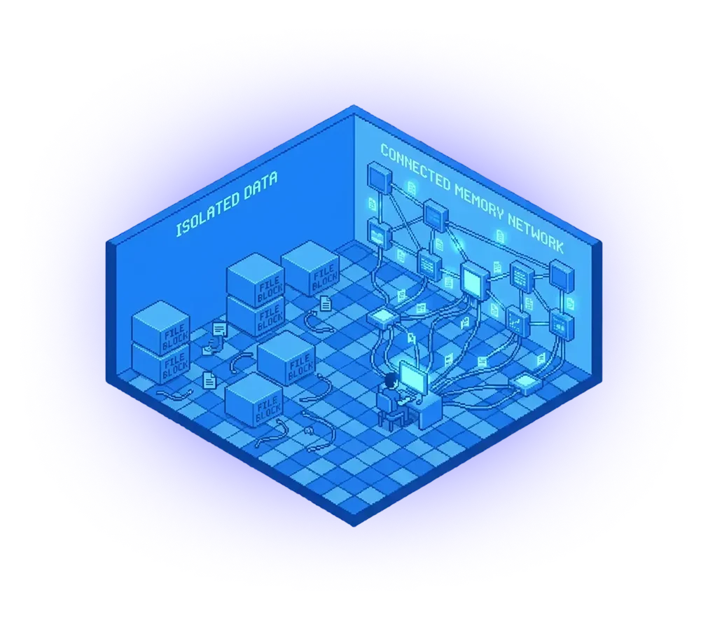 Modern note-taking apps help capture information — but without memory, they can’t connect ideas, recall past context, or accelerate how people think and work. Productivity flatlines when tools forget everything between sessions.